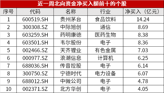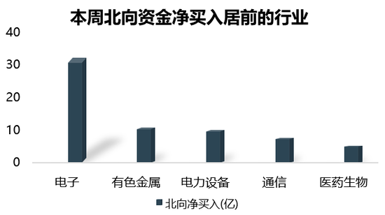 从行业来看,近一周净买入居前的为:电子(+32.25亿)、有色金属(+10.73亿)、电力设备(+10.03亿)、通信(+7.73亿)、医药生物(+5.13亿)等行业。