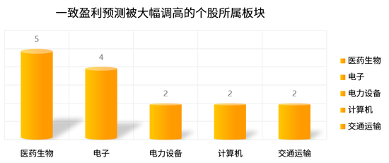 近一月,一致盈利预测被大幅调高的个股所覆盖的行业主要包括医药生物、电子、电力设备等。