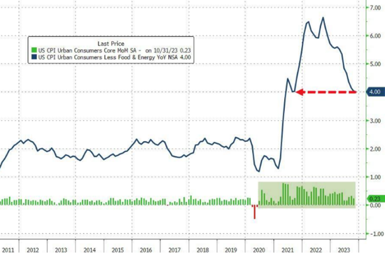 美联储更为关注的美国11月核心CPI(剔除食品和能源成本),同比增速为4%,持平前值和预期,但仍高于美联储的2%的目标水平,环比增速由0.2%回升至0.3%,与预期一致。