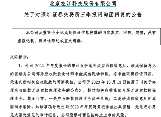 消息面上,最贵ST股、证监会立案股、冲刺保壳股,同时具有上述多重身份的*ST左江,在12月12日深夜回复了深交所三季报问询函。公司从财报“非标”风险、财务指标不达标风险等多个角度,提示公司股票或将存在终止上市交易的风险。同时,*ST左江明确表示,雪球APP中流传的有关公司三季报业绩交流会内容不准确。