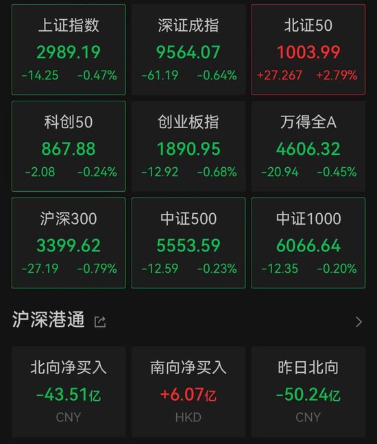 从A股市场来看,A股再度打响3000点保卫战。截至发稿,上证指数、深证成指、创业板指微跌,北上资金流出超40亿元。