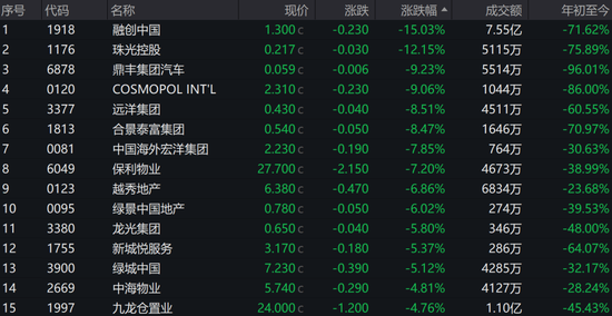 12月13日,内房股普跌。融创中国跌15.03%,珠光控股跌12.15%,鼎丰集团汽车跌9.23%,领跌恒生地产建筑行业综合指数成分股。