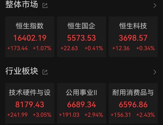 隔夜美联储“放鸽”,市场对降息的预期升温。 或受此影响,12月14日,港股三大指数收涨。截至收盘,恒生指数上涨1.07%,恒生国企指数上涨0.41%,恒生科技指数上涨0.34%。