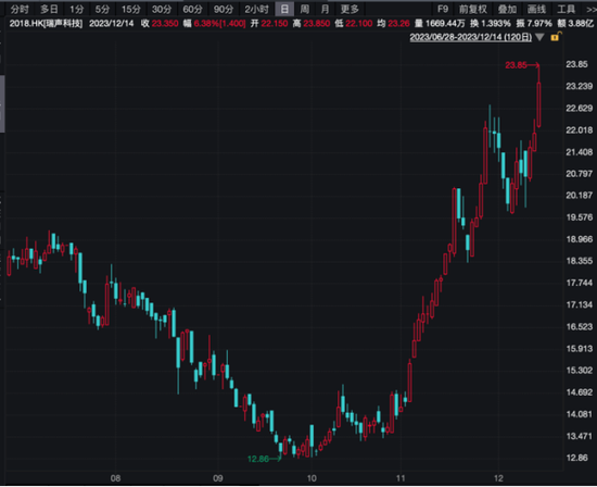 瑞声科技股价走势