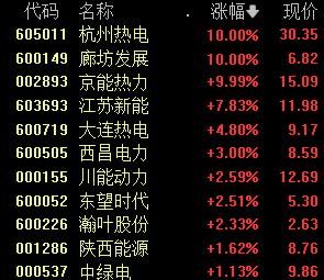 南京公用录得6天4板,京能热力3连板,杭州热电两连板,大连热电(维权)、国新能源等纷纷跟涨。