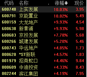 12月15日,房地产开发板块盘中走高,截至发稿,京能置业、上实发展(维权)、大龙地产、新黄浦4股涨停,京投发展、光明地产、天保基建、中交地产等纷纷跟涨。