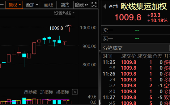 目前临近圣诞节,运输已进入旺季,航运市场的运价呈现显著上升趋势。根据上海航运交易所12月16日公布的周度报告数据显示,当下欧美航线市场运价均上涨,带动综合指数上涨。12月15日,上海航运交易所发布的上海出口集装箱综合运价指数为1093.52点,较上期上涨5.9%,其中欧洲航线和北美航线涨幅最大。今日早盘,集运指数(欧线)期货指数涨停。