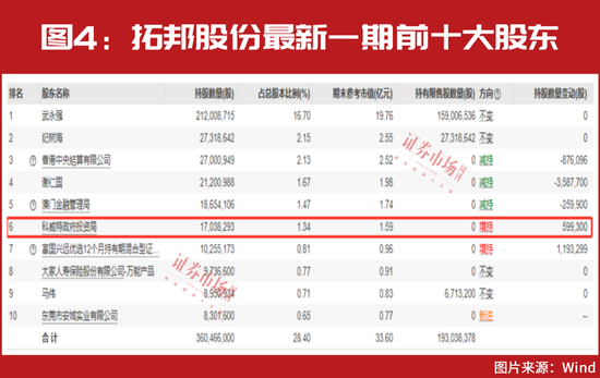 据丽珠集团披露的最新股东持仓信息显示,今年第四季度以来截至12月12日,阿布扎比持有公司股份数量增加了48.18万股,科威特投资局则以新进的姿态成为公司的前十大股东(见图1)。