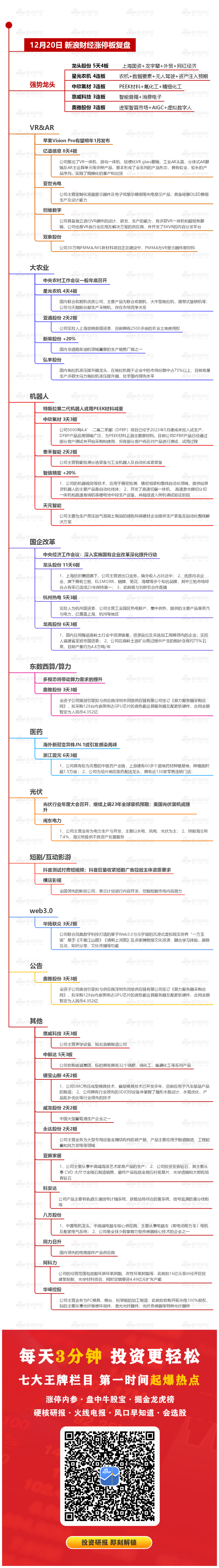 【12月20日沪深两市涨停分析】三大指数均跌超1%,混合现实、农机板块逆势走强。龙头股份录得5天4板,星光农机实现4连板,中欣氟材、惠威科技、奥雅股份均走出3连板,一图看懂>>