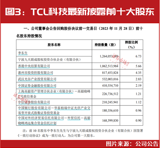 而一向公开重仓标的较多的邓晓峰,四季度除了新进重仓了丽珠集团,还在坚守TCL科技。11月28日登记在册数据显示,高毅晓峰2号致信基金和高毅晓峰鸿远集合资金信托计划也分别以22673.65万股和16859.98万股的持仓位居公司第六大和第九大股东,相较三季度末,持股均为无变动式持有(见图3)。