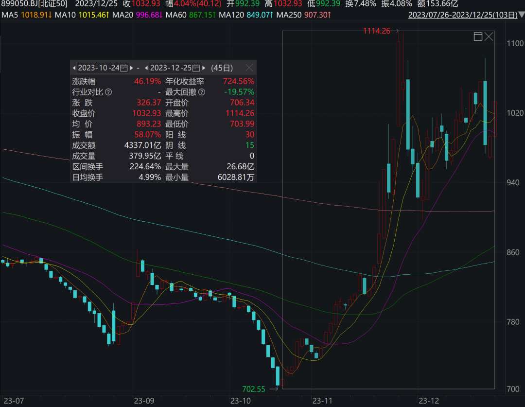 本周一(12月25日),北交所再度迎来大涨。
