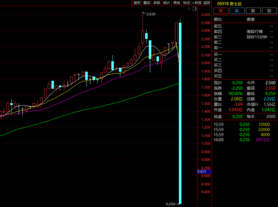 奇士达早间还微幅上涨,临近午间收盘时突然跳水急跌,截至收盘跌90%,创历史新低,成交逾2亿港元。此前近5个月,奇士达累计大涨逾500%,今日一天全部跌回。