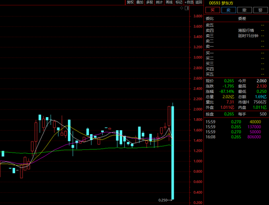 梦东方开盘没多久后就开始下挫,几无反手之力,截至收盘跌87.14%,创历史新低。昨日梦东方公告,创升控股在12月22日公开市场出售梦东方合共920.5万股,每股平均价1.67港元,总代价约1538万港元,估计出售确认收益1400万港元。