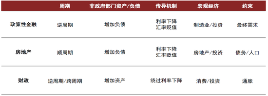 财政扩张能真正有效促进经济可持续复苏,并有助于稳定汇率,从而在全球产业链调整中避免或减少实体资源转移的福利损失。相比房地产和政策性金融等偏信贷驱动的政策,财政政策可以做到真正的逆周期和跨周期。经济下行期间,居民和企业收入下滑且对未来缺乏信心,贷款需求弱。通过财政扩张给予的减税或补贴,却不会有人拒绝,我们认为财政因而是最有效的逆周期调节工具。跨周期视角来看,财政和信贷还存在一个本质区别,信贷扩张增加居民和企业的当前现金流,是以增加未来债务、缩减未来现金流为代价的。相反的,财政扩张包括减税、转移支付、政府采购等,都实实在在地增加了居民和企业当前的收入和净资产。从这个意义上来看,财政扩张能够提升居民和企业的持久收入,对于填补跨周期的需求缺口更具针对性。
