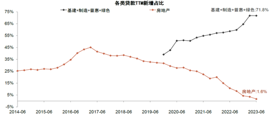 注:基建、制造、普惠、绿色贷款官方口径存在一定重复计算,已剔除重复部分。基建包括交通运输、仓储和邮政业,电力、热力生产和供应业,水利、环境和公共设施管理业,建筑业,租赁和商务服务业,数据截至2023年2季度末