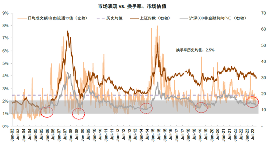 图表:当前A股估值水平与历次市场阶段性底部时期对比