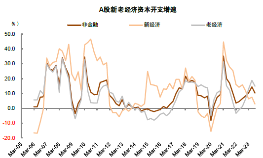 2)供给侧分化:在内外需增长中枢有所放缓的背景下,供给侧逐渐成为需要关注的重点,部分资本开支大幅扩张的领域当前或面临阶段过剩问题,而供给侧率先放缓的领域在供需压力方面具备比较优势。我们通过全行业的梳理(详见《从供给侧出清视角看行业投资机会》),部分上游资源行业和传统制造业过去资本开支长期不足,基本面经历了中长期的供给出清,不仅在当下可能更有韧性,而且未来基本面边际改善也将具备更大的业绩弹性。该逻辑在2023年上市公司的基本面和股价已得到初步体现,2024年我们认为仍然值得重视。