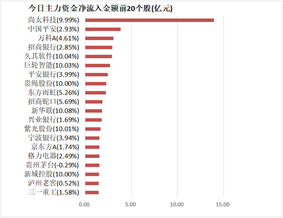 今日沪深两市主力资金开盘净流出31.9亿元,尾盘净流入9.71亿元,两市全天资金净流出128.22亿元。