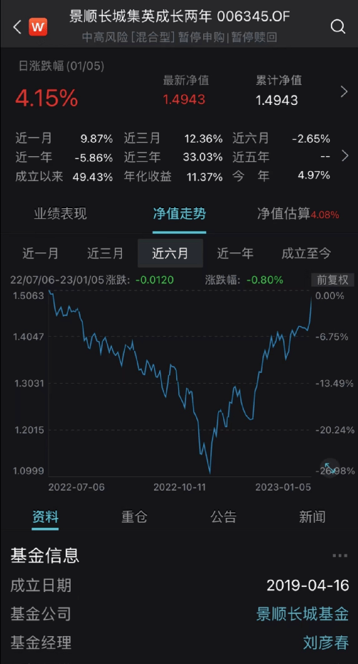 如知名基金经理刘彦春管理景顺长城集英成长两年去年11月以来净值增长率超30%,达到35.86%,尤其是1月5日一日涨幅就高达4.15%。所管理景顺长城绩优成长A的这段期间收益率也达到32.47%。