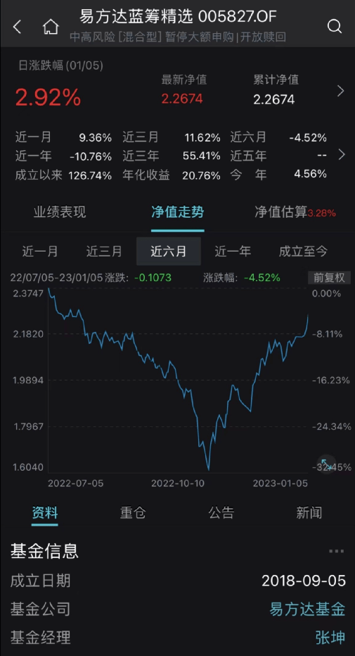 数据显示,截至2023年1月5日,自去年11月1日以来,张坤管理的易方达优质精选净值增长率高达42.73%。他所管理的其他基金净值也快速回血。