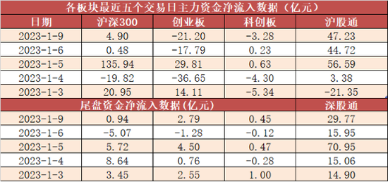 沪深300今日主力资金净流入4.9亿元,创业板净流出21.2亿元,科创板净流出3.28亿元。沪股通净流入47.23亿元,深股通净流入29.77亿元。