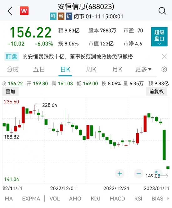 因董事长被免去中国人民政治协商会议第十二届浙江省委员会常务委员职务,1月10日当天,数据安全龙头安恒信息20CM跌停,引发全市场关注。