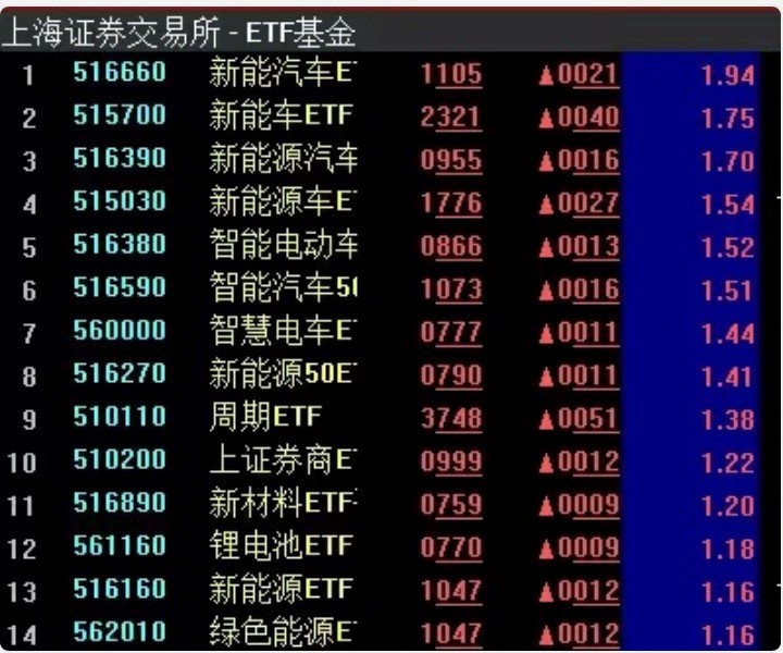 锂电池板块在宁德时代和比亚迪的带动下,今天总体表现不错,当升科技、容百科技、恩捷股份、西藏矿业等,跌了很久很深之后,总算是有点反弹。而从ETF基金的表现看,今天排名靠前的,也基本都是新能源车、锂电池一类的基金。