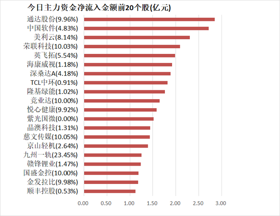 4、通达股份主力资金净流入2.85亿元居首