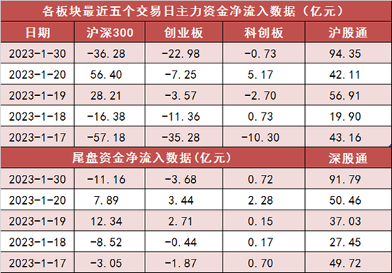 沪深300今日主力资金净流出36.28亿元,创业板净流出22.98亿元。沪股通净流入94.35亿元,深股通净流入91.79亿元,合计净流入186.14亿元。