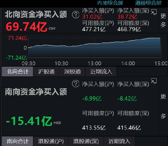 收评:北向资金净买入69.74亿元 沪股通净流入31.02亿元