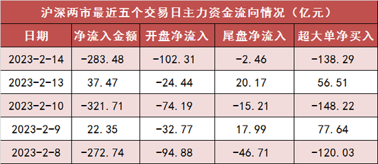 今日沪深两市主力资金开盘净流出102.31亿元,尾盘净流出2.46亿元,两市全天主力资金净流出283.48亿元。