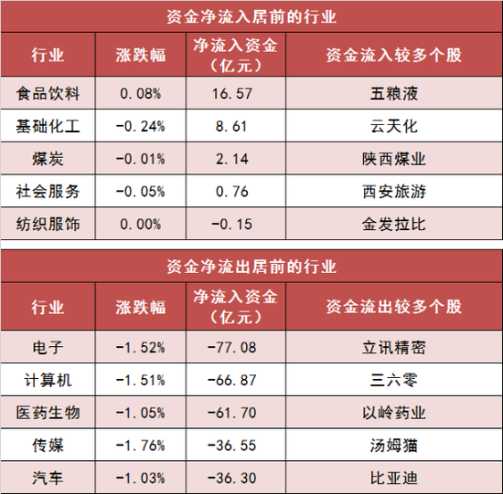 【27日资金线路图】两市主力资金净流出265亿元 食品饮料等行业实现净流入