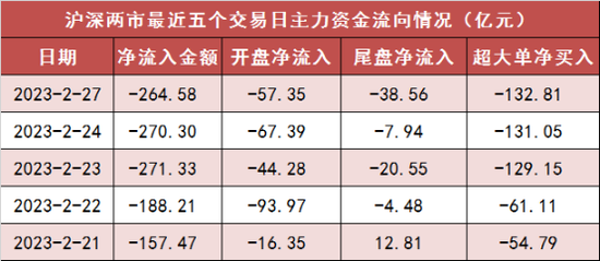 今日沪深两市主力资金开盘净流出57.35亿元,尾盘净流出38.56亿元,两市全天资金净流出264.58亿元。