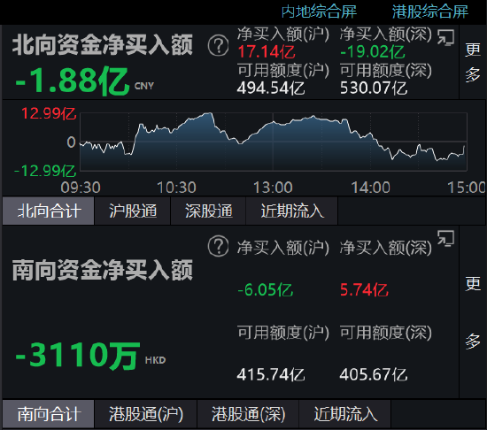收评:北向资金净流出1.88亿,沪股通净流入17.14亿元