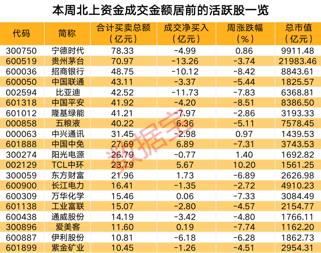 本周北上资金显著净流出,合计净流出105.98亿元。