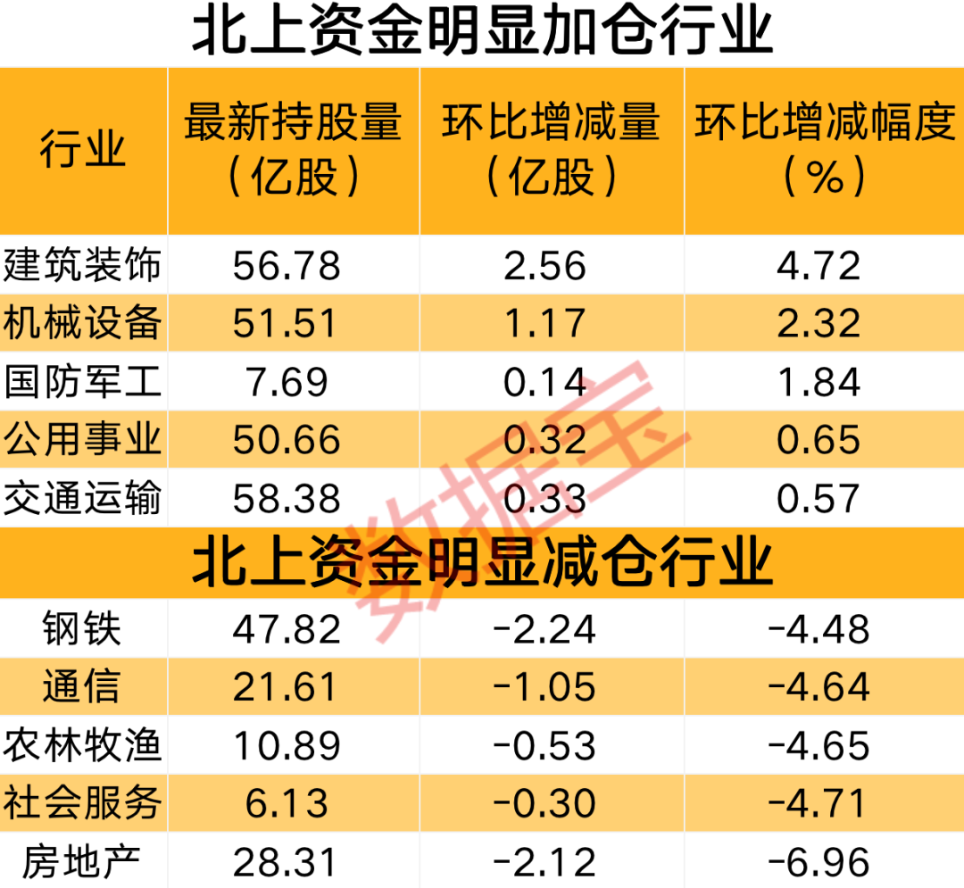 分行业来看,本周北上资金以减仓为主,仅8个行业获得持股量增长,建筑装饰、机械设备、国防军工持股量周环比增幅居前,本周周期板块遭减持较多,房地产、社会服务、农林牧渔、通信、钢铁、轻工制造减仓幅度居前,持股量降幅均在4%以上。