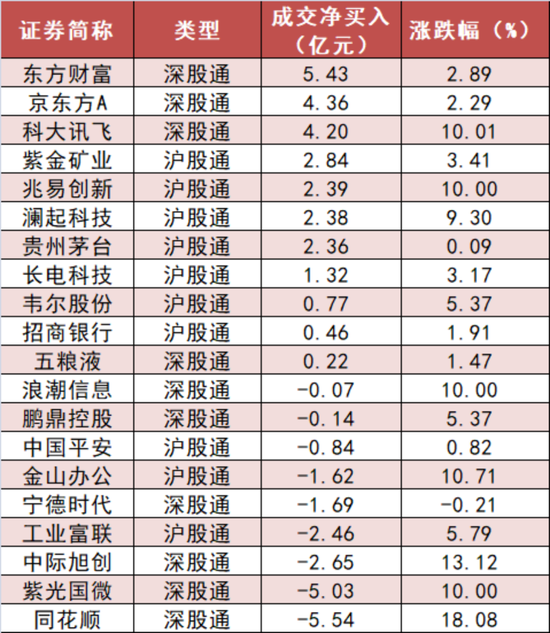 6、今日沪股通和深股通前十大活跃股