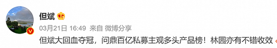 2022年在东方港湾投资旗下产品业绩普遍表现较差的背景下,但斌的调仓举动曾多次遭到了投资者的质疑,如今旗下部分产品净值大幅修复,对于公司来说无疑是个好消息,界面新闻注意到但斌本人近日也曾在社交媒体转发有关其业绩回血的相关文章。
