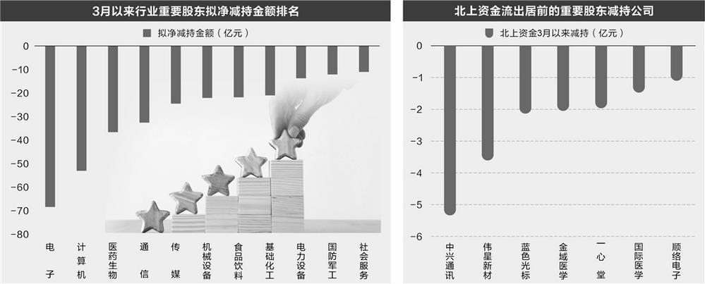 在上市公司重要股东减持的同时,北上资金和融资资金也在减持部分股票。数据宝统计,上述重要股东净减持超亿元的股票中,3月以来按照区间成交均价计算,中兴通讯、伟星新材、蓝色光标、金域医学、一心堂、国际医学(维权)、顺络电子遭北上资金减持超亿元。