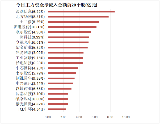 4、浪潮信息净流入8.51亿元居首