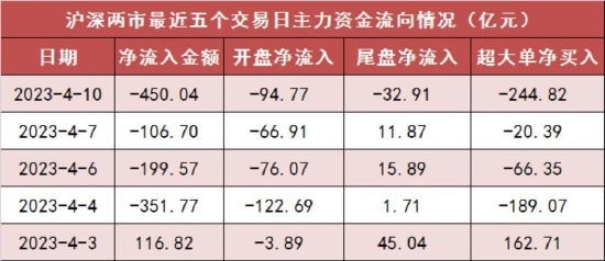 1、两市主力资金净流出450亿元