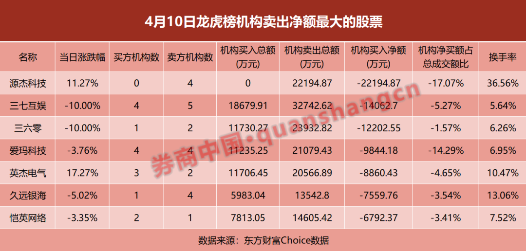 (中电港4月10日龙虎榜)