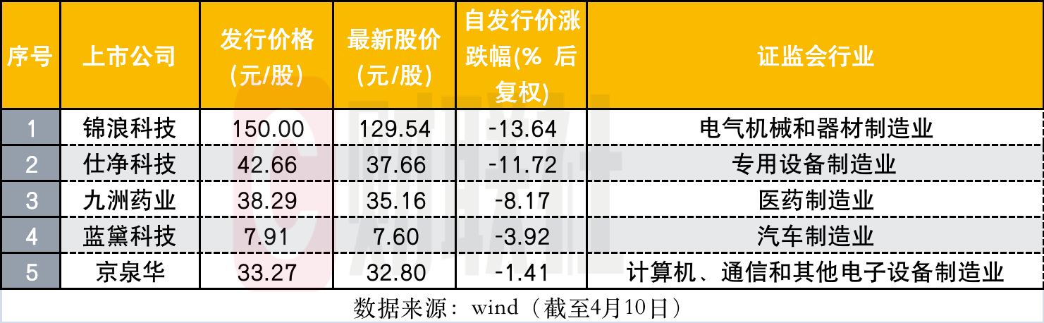 年初至今,参与锦浪科技、仕净科技、九洲药业、蓝黛科技、京泉华5家上市公司定增的公募基金已经出现浮亏。
