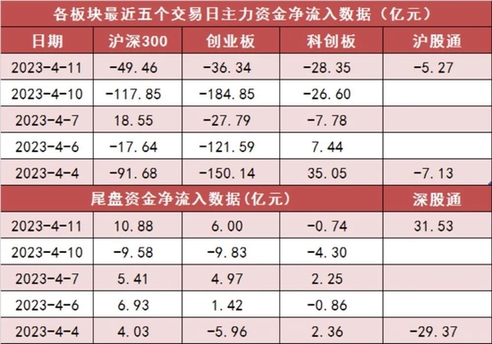 沪深300今日主力资金净流出49.46亿元,创业板净流出36.34亿元。沪股通净流出5.27亿元,深股通净流入31.53亿元。