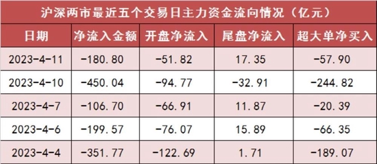 今日沪深两市主力资金开盘净流出51.82亿元,尾盘净流入17.35亿元,两市全天资金净流出180.8亿元。