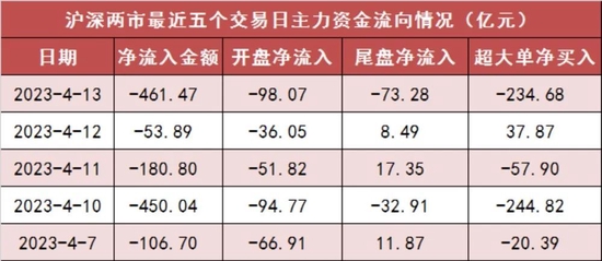 今日沪深两市主力资金开盘净流出98.07亿元,尾盘净流出73.28亿元,两市全天资金净流出461.47亿元。