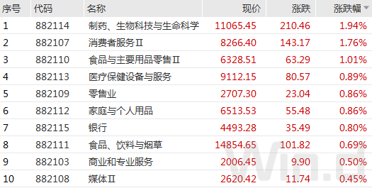 4月13日,A股震荡回调,行业板块方面涨跌互现,其中,生物制药板块上涨1.94%,位居首位;消费者服务、食品与主要用品零售、医疗保健设备与服务、零售业等板块涨幅居前。