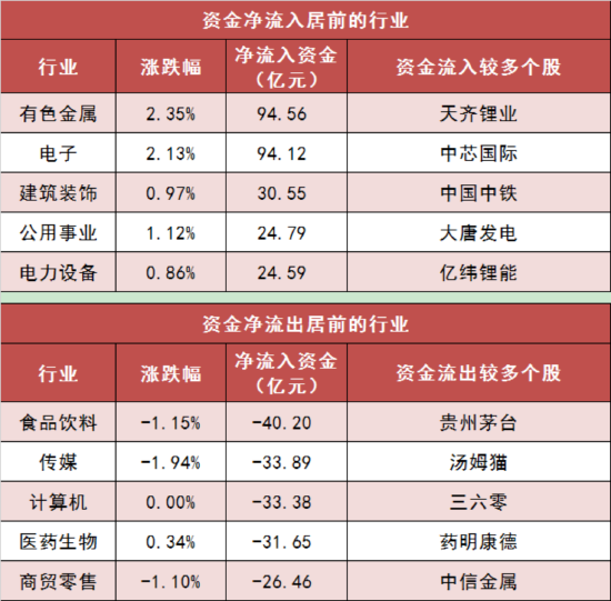 【14日资金路线图】两市主力资金净流出96亿元 有色金属等行业实现净流入