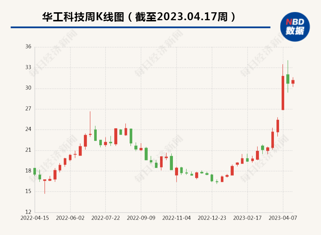 截至发稿,华工科技上涨2.44%,暂报31.45元,最新市值316.2亿元,该股自今年1月初的17元左右,到4月10日的最高点34元,不到4个月整整翻了一倍。