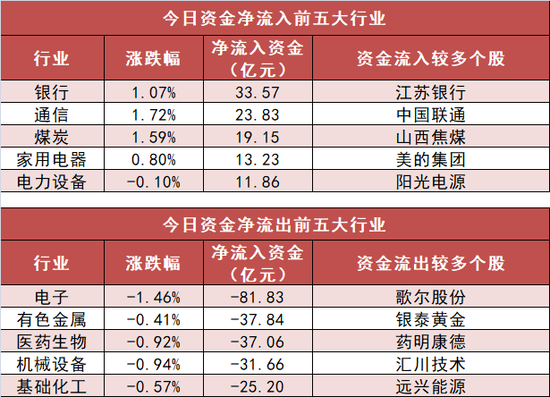 3、银行业净流入33.57亿元居首